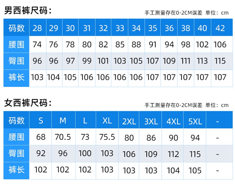西服定制尺码表